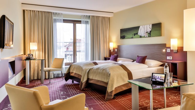 Das Dorint Hotel mit seinen 139 modern eingerichteten Zimmern in 3 Kategorien wird durch seine Nähe zum Messegelände sowie Kongresszentrum wie auch zum Flughafen und Bahnhof bei Geschäftsreisenden sehr geschätzt.