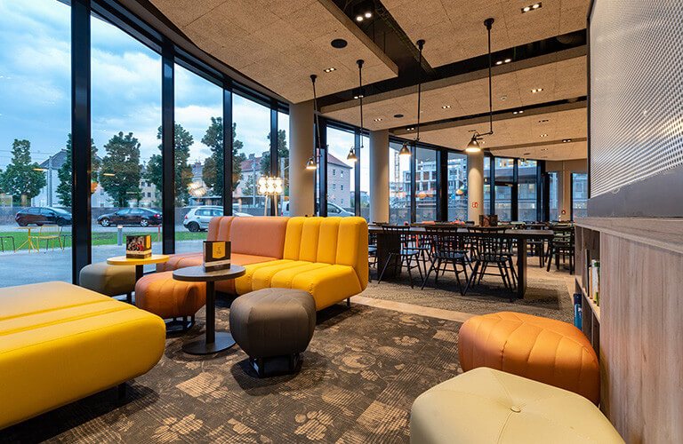 shines in the latest a&o look. A design lobby and modern rooms with private bathrooms await you here. Our friendly service at the reception and bar is available around the clock with delicious drinks and snacks as well as information about your city trip. Fast WiFi is available throughout the house free of charge.